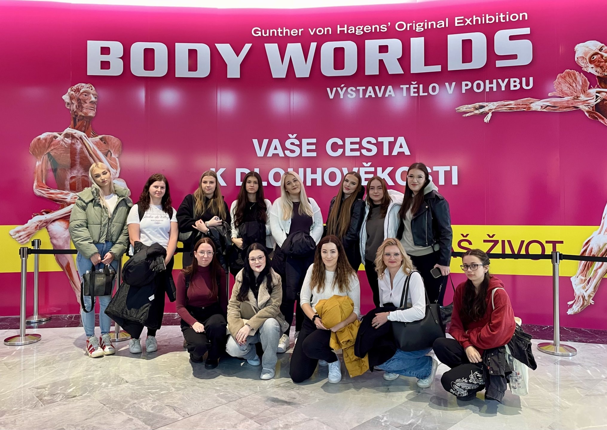 V pátek 12. 12. 2025 se kosmetičky zúčastnily odborné exkurze v Praze, kde navštívily známou výstavu Body Worlds. Výstava nabídla jedinečný pohled na lidské tělo, jeho stavbu, fungování orgánů a vliv životního stylu na zdraví člověka. Pro žákyně byla návštěva velmi přínosná zejména z hlediska propojení teoretických znalostí s praxí. Získané poznatky mohou využít nejen ve výuce, ale také při budoucí práci s klienty.