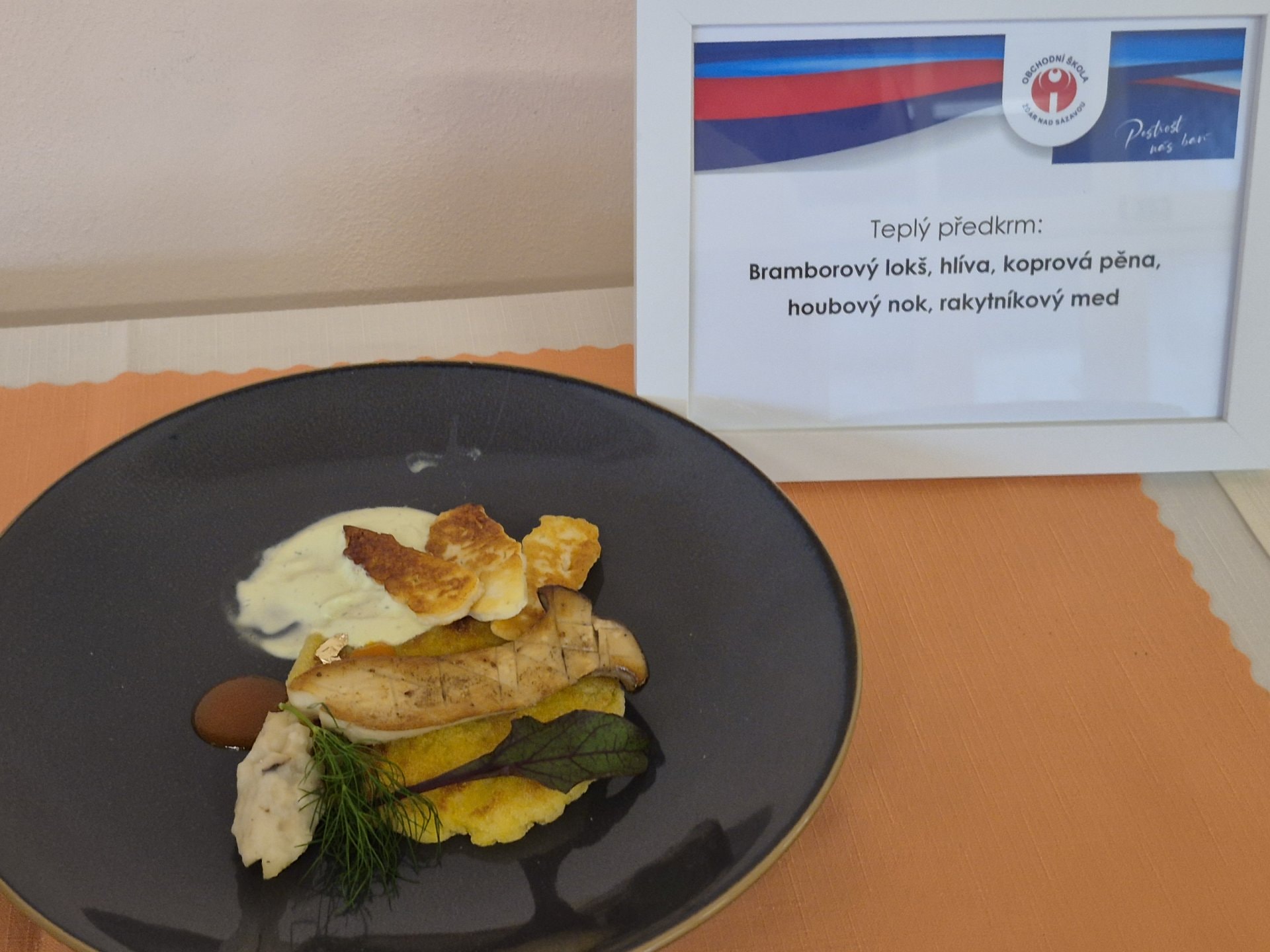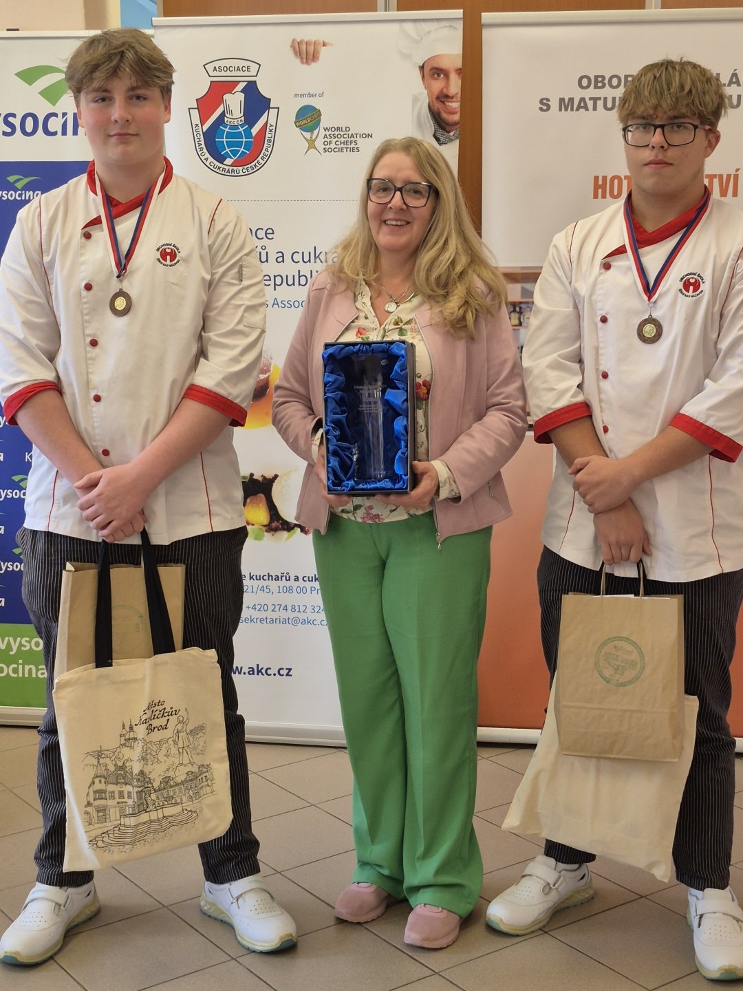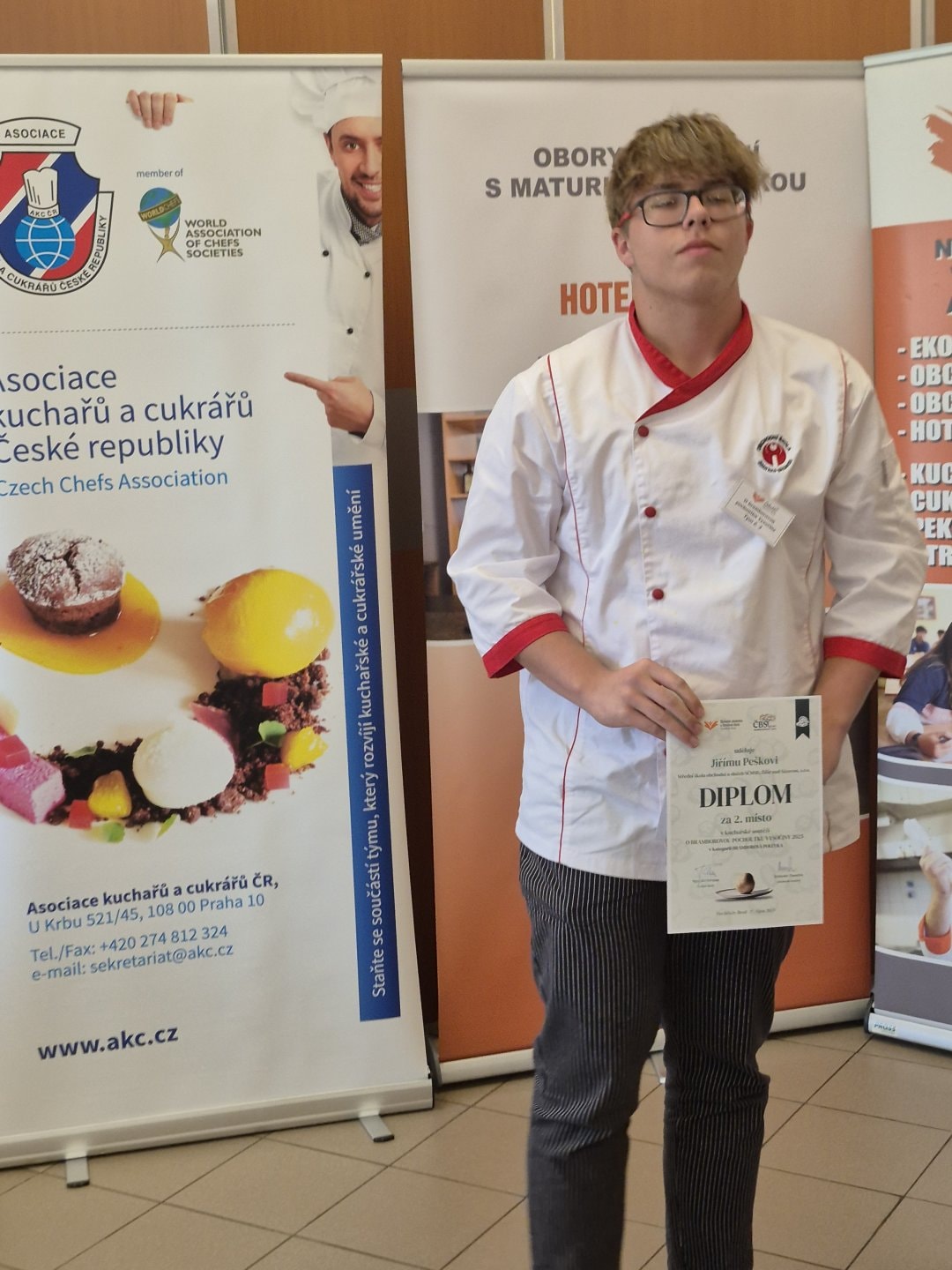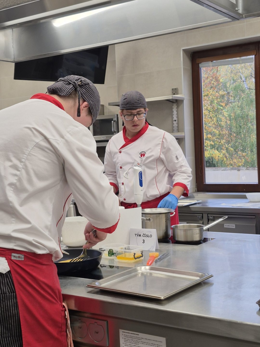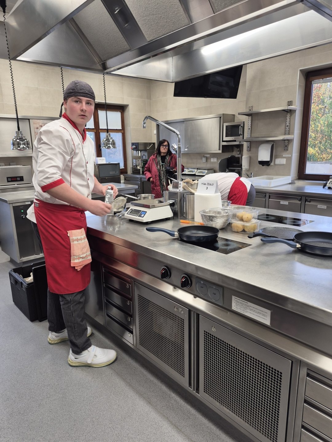 Dne 17. 10. 2025 se konala soutěž O bramborovou pochoutku Vysočiny v Havlíčkově Brodě, které se zúčastnili naši žáci oboru Kuchař - číšník Jiří Pešek a Kryštof Klíma. V těžké konkurenci jsme získali v kategorii Polévka z brambor 2. místo za Mrkvovou polévku s fenyklovým knedlíčkem a podmáslím a v kategorii týmů pohár za 3. místo. Našim úspěšným kuchařům gratulujeme a těšíme se na další soutěže.