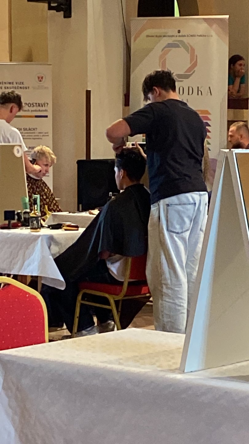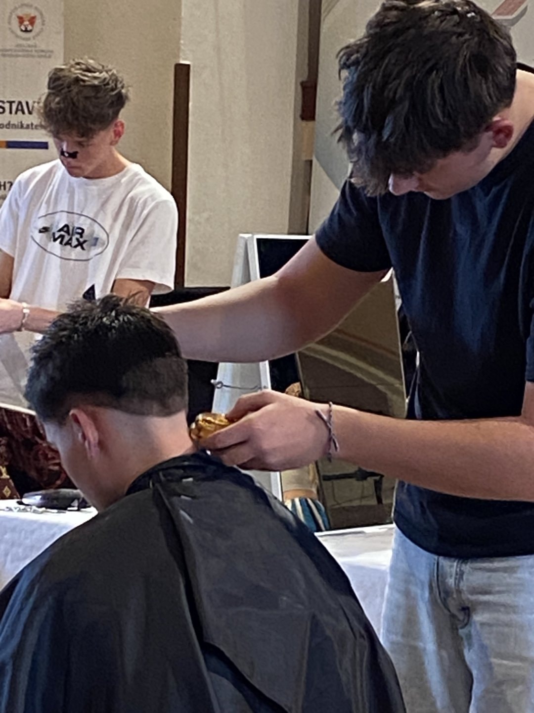 Skvělého výsledku dosáhl také náš žák v Barber soutěži, který obsadil druhé místo. Jeho práce vynikala precizností střihu, moderním stylem a smyslem pro detail, což ocenila nejen porota, ale i diváci.