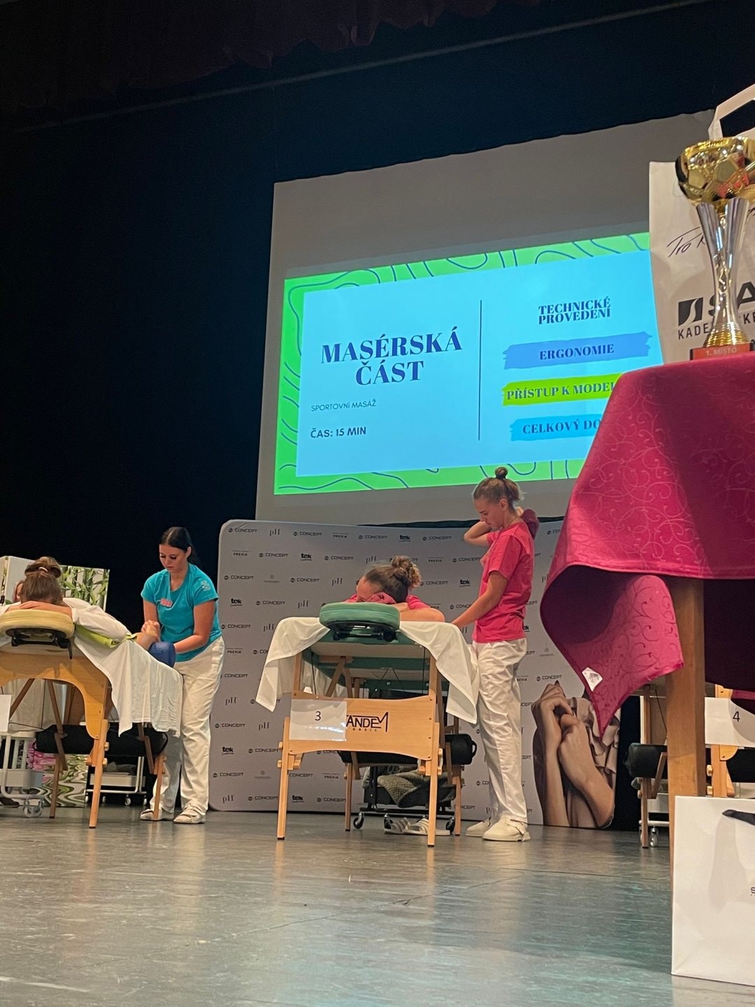 Naši žáci opět ukázali, že patří mezi špičku ve svém oboru! V nedávné odborné soutěži Pro Masters v Poličce se týmy z naší školy umístily na prvních místech hned ve dvou kategoriích – sportovní masáž a tematická fantazijní masáž. Jejich precizní technika, kreativita a profesionální přístup zaujaly porotu natolik, že si odnesli první místa.